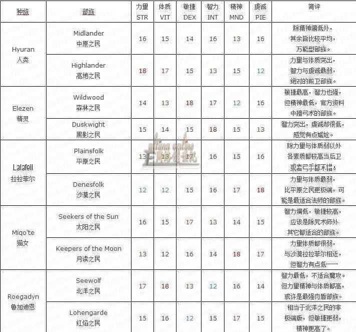 五大种族初始属性
