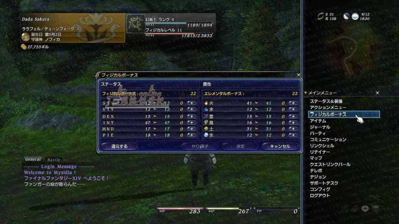 在图2中我们能看到最终幻想14的一个加点设置,这里我们每升1级,都会获得相应的属性点,呆呆说的可是人物等级不是职业等级哦,如果不懂什么是人物或者职业继续往下看,该窗口在HOME的第三个选项里,这里除了属性加点之外还有一个元素加点,元素考虑到玩家被怪物攻击所受到的伤害大小。细微的加点才能让自己变的更强壮哦。