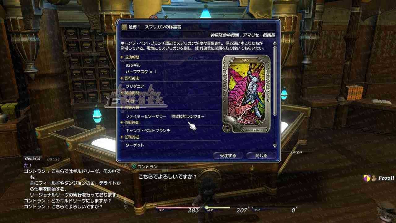 我们需要来每个都市的冒险者工会,进行一个任务的接取操作,如上图中,选择相应的卡片,然后会提示该任务的详细介绍,我们确定好后就可以选择接取啦,相信大家在看宣传片的时候对男猪脚在跟卡片男玩游戏的时候印象很深吧!FF14的任务方面的确方便了大多数玩家,也让大家对一个地点的归属有着浓厚的兴趣。不像传统网游一个个NPC满世界乱转。当接取任务后,在到任务介绍的水晶店激活即可。