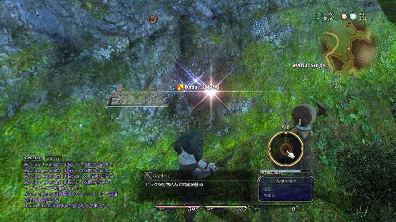最终幻想14的挖矿伐木和钓鱼设置的还是很有意思,不像大部分网游找到矿点就一直点就好了,在最终幻想14中需要玩家熟悉技巧才能得到资源,这里呆呆用挖矿来为大家讲解下,我们首要要准备好工具,然后找到发亮光的石头,伐木也是如此,当靠近时如图1,会出现一个感叹号,这时候我们单机就可以看到挖矿的按钮啦,点击后我们进入到挖矿状态,如图2,挖矿会以1个圈来决定挖矿的力度及技巧问题,圈大力大,圈小力小,并不是说力气越大矿就能挖到,而是需要找到矿点的准备感觉和位置,这里建议大家看看呆呆的视频教学。