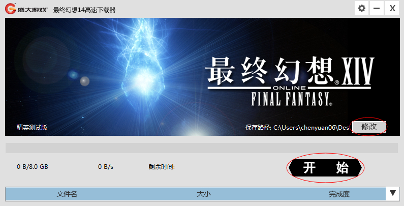 第二步:打开“ffxiv_setup”下载安装程序,点击“修改”设置所需保存的路径,点击“开始”进行下载安装。