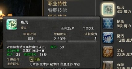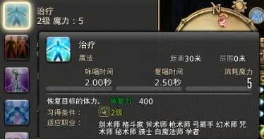 群体增益BUFF,虽然全职业可以使用,不过其他职业的玩家没必要的话不建议玩到8级,2级有个加血的就可以了。后期FF14应该会是时间收费的游戏,浪费时间就是浪费金钱。