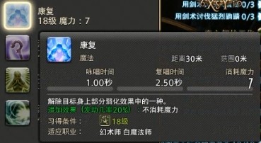 康复说白了就是去除一些恶心的BUFF,比如持续伤害啊,治疗效果降低啊,增加敌对方输出啊什么的,在20级之前的所有副本中不是很有用的技能,20以后的就不知道了。