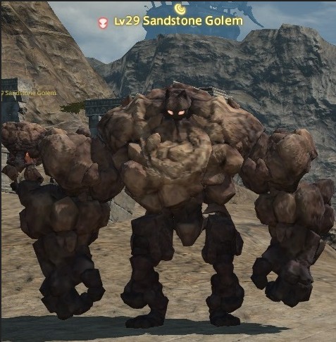 FF14:石头人,区别于一些带火灵核心的石头怪物,他因为是通过魔法注入拼凑的,没有生命力,一旦控制者死亡,就散碎一地,最强形态在巴哈姆特大迷宫1层3层的守门神,双手鼓掌式的击震,范围伤害惊人!