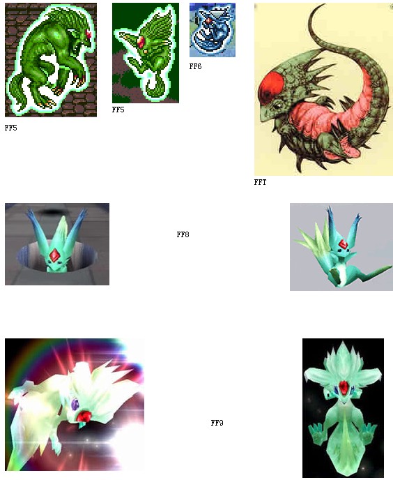 低级怪兽,常用雷属性攻击,物理攻击带石化。FF4会作为召唤兽加入我方。