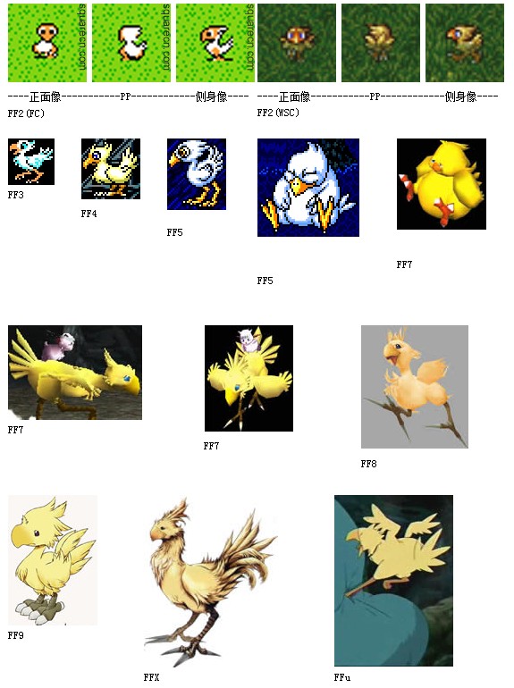Chocobo是SQUARE的宠物,历代最终幻想里都少不了他的客串,如果想把一代最终幻想打至完美,你是绝对少不了他的帮助的.