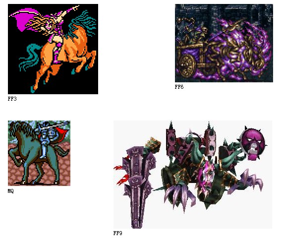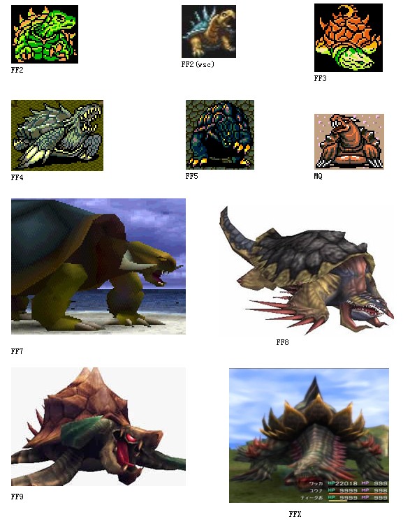 暗黑属性的召唤兽,能把任何东西吸入无底的大口中,在FF9里面在剧情中出现。FF5里作为BOSS首次登场便震惊四座。此怪物精通各种时空魔法,无底的大口便素那通往异次元的虫洞。