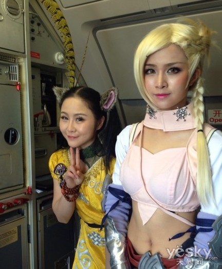今日春秋航空公司联合盛大游戏旗下大作《最终幻想14》首个动漫航线正式起飞。空姐和不少玩家齐齐cos《最终幻想14》知名角色,而且乘客中还“潜伏”着来自盛大游戏最终幻想cosplay精英赛前三名的优秀coser,为大家带来精彩表演。