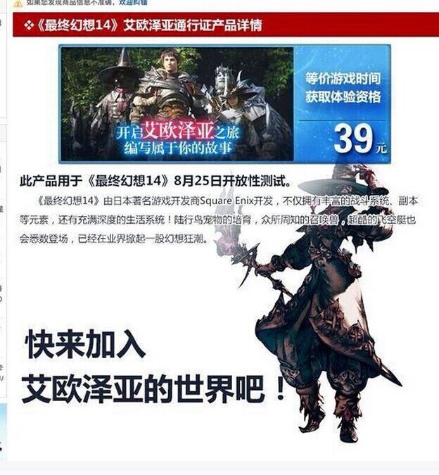 7.31日有网友在京东最终幻想14激活码销售页面上看到关于最终幻想14开放性测试的消息,以下为截图内容.至于真伪,根据之前FF14的测试情况,小编认为十有八九。你怎么看?