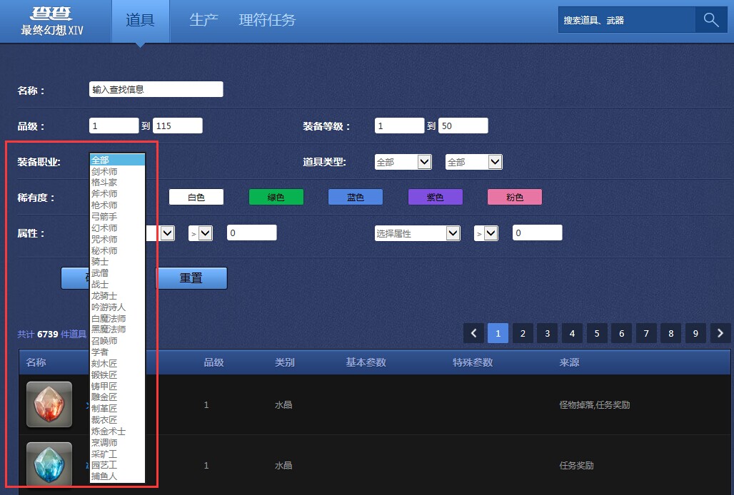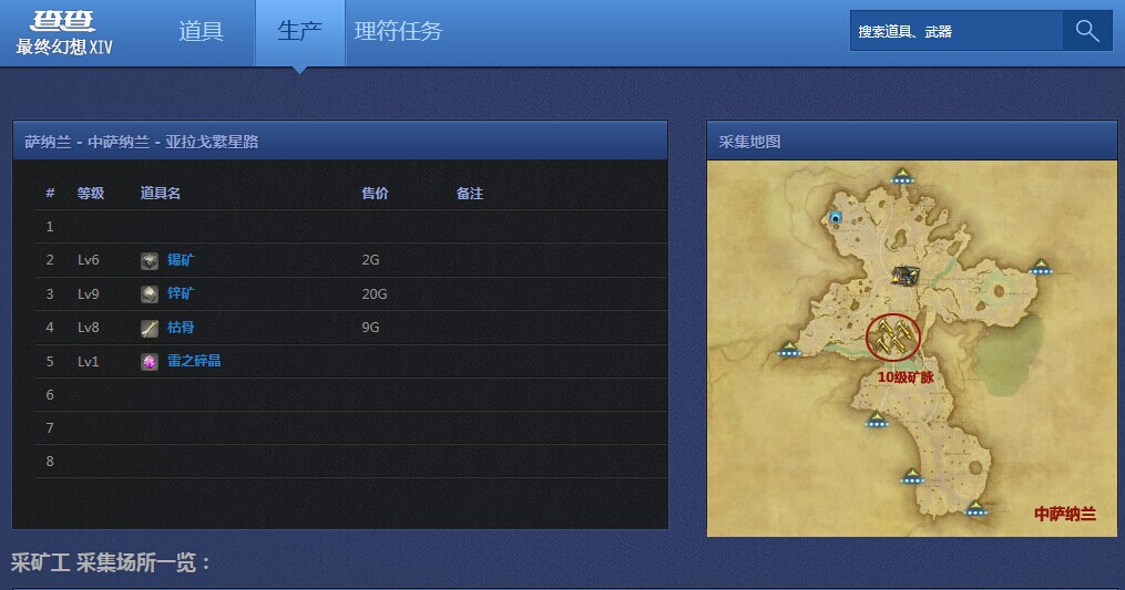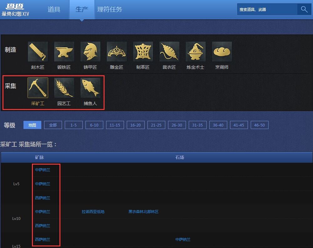 FF14数据库:新增职业分类搜索及采集点